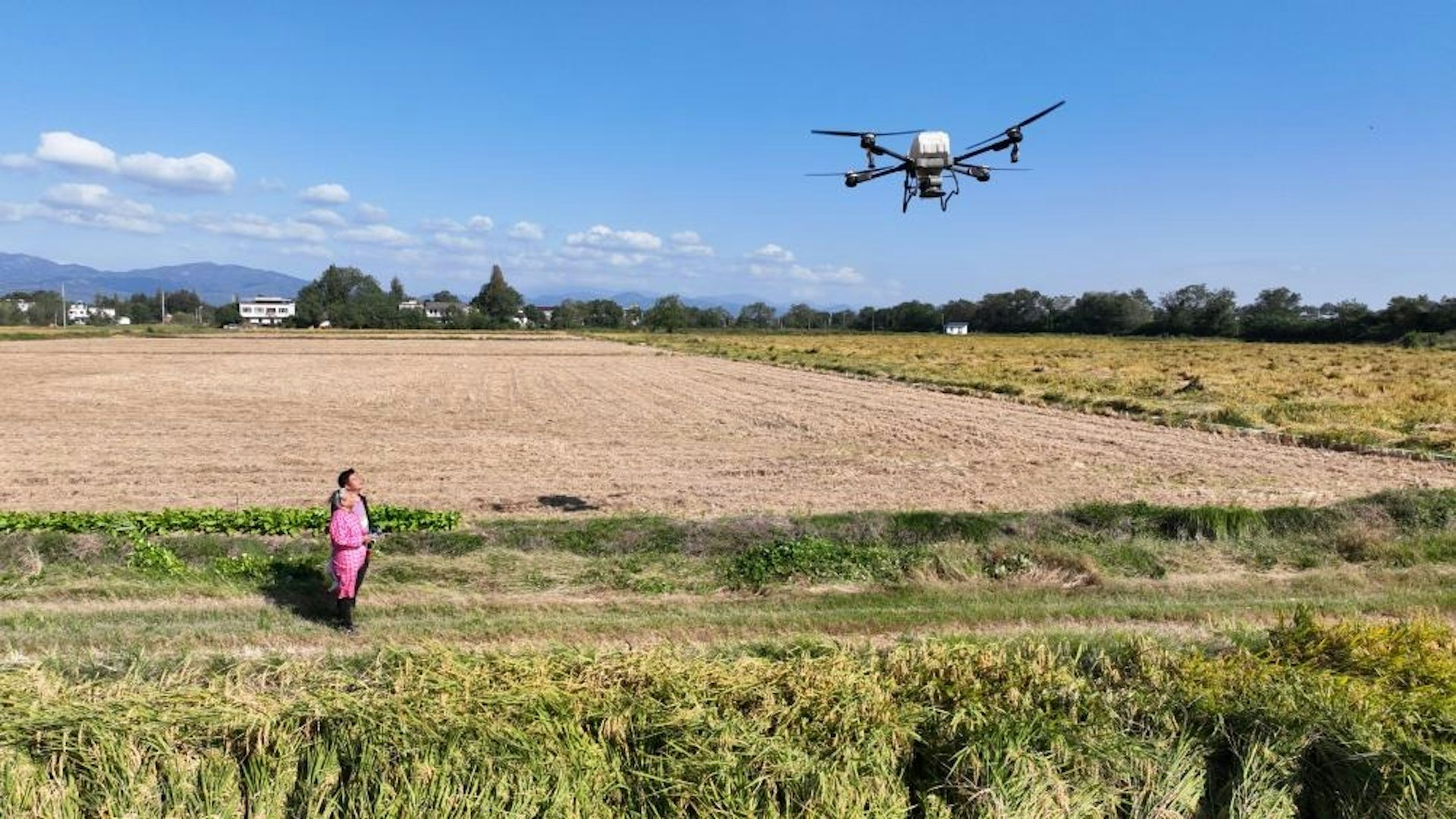 戴淑英在孫兒王甜甜指導下,操作植保無人機。(網上圖片)tvb now,tvbnow,bttvb& n% x9 x5 w! I$ O# X# T6 a* W