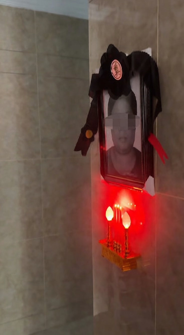 據悉,熊女士曾多次向物業投訴,但都沒有得到有效處理。一氣之下,她竟將去世婆婆的遺照掛在了正對領居家門口的牆上祭拜,企圖以「魔法擊敗魔法」。