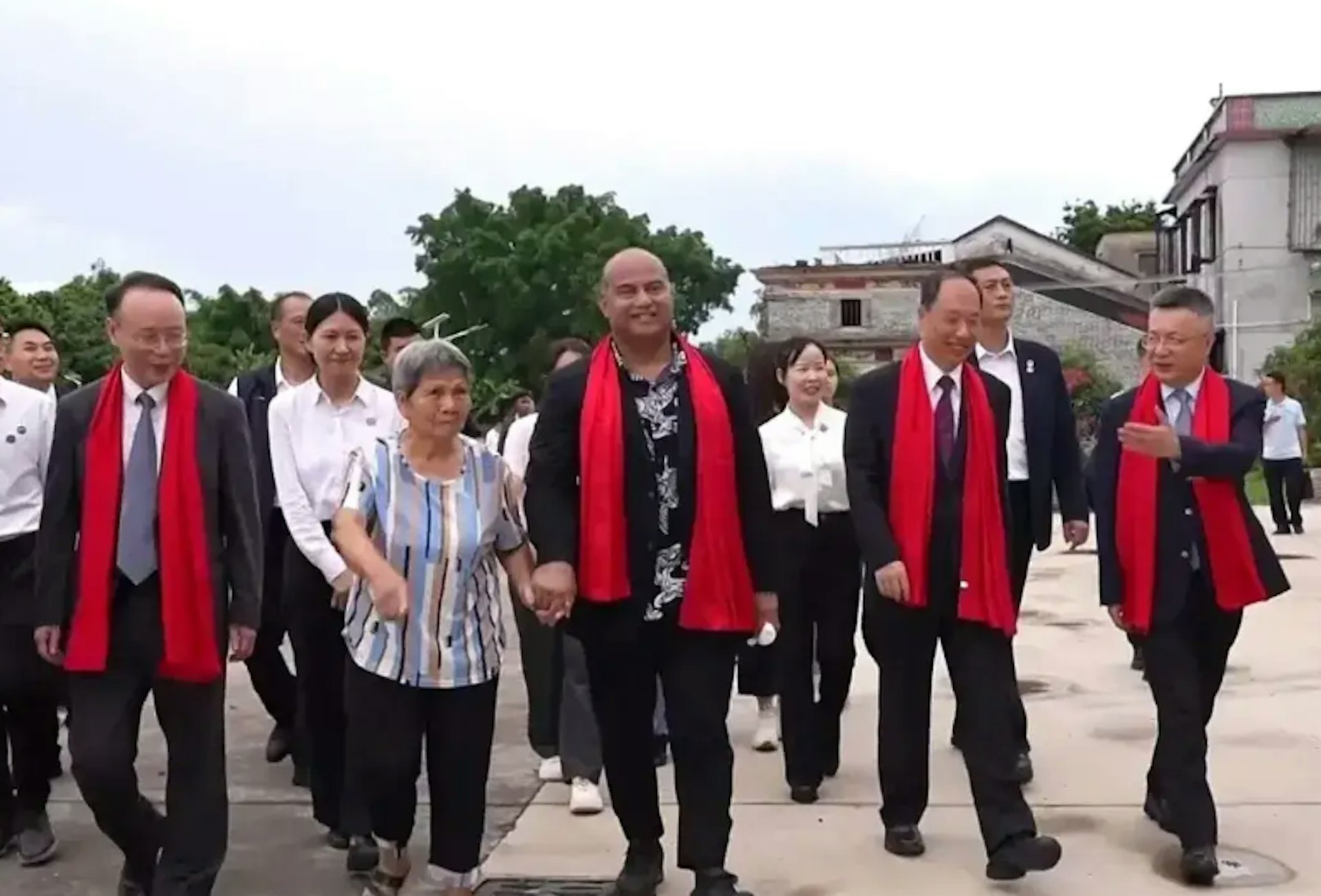 1 \: [7 k, ?6 m" k g p, }/ _瑙魯總統阿迪昂(David Adeang,中)2024年3月24日抵達中國,展開為期6天的國事訪問行程(影片截圖)