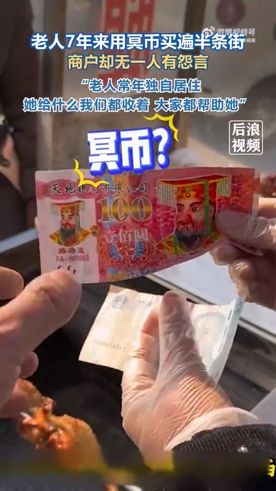 近日據媒體報道,山東棗莊一位老奶奶連續7年在小吃街用卡片冥幣等換取食物,小吃街攤主們不僅毫無怨言還特別配合。