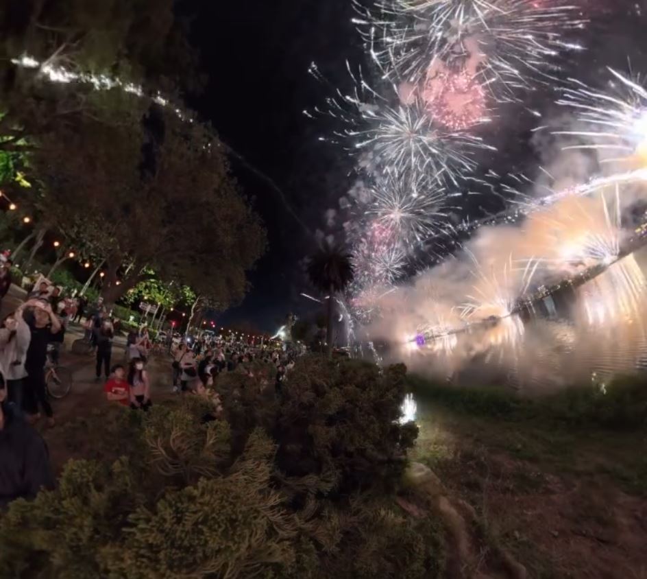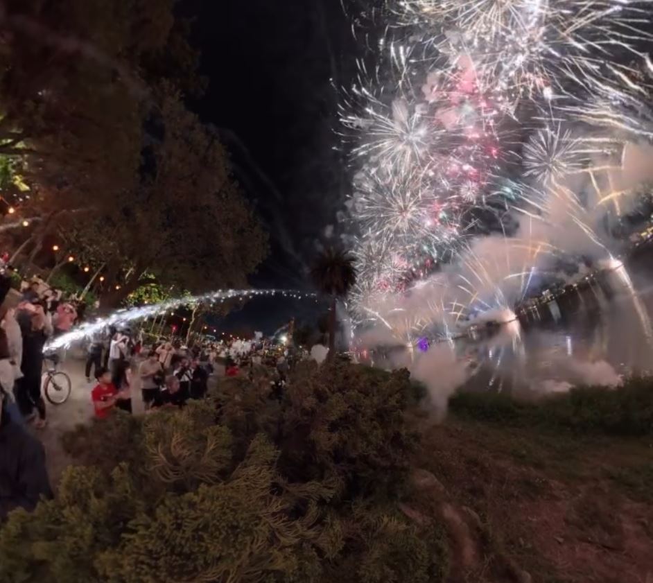 + _& Q L( m9 {台灣高雄舉行煙花活動時,煙花彈意外射向人群。Threads@wang_flying