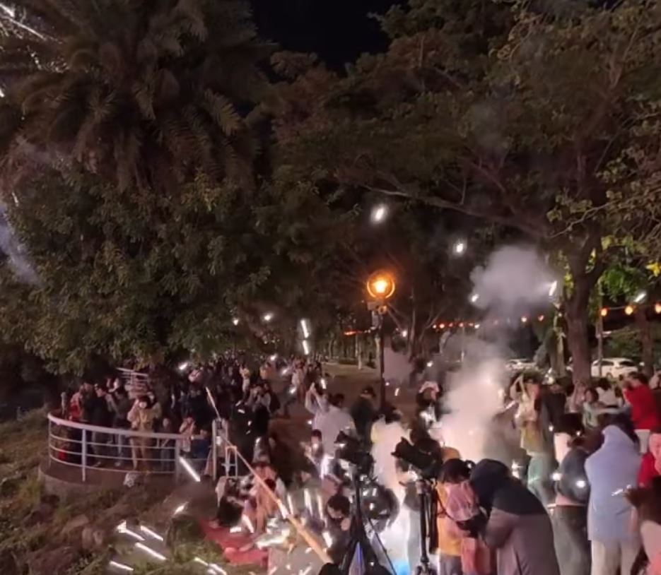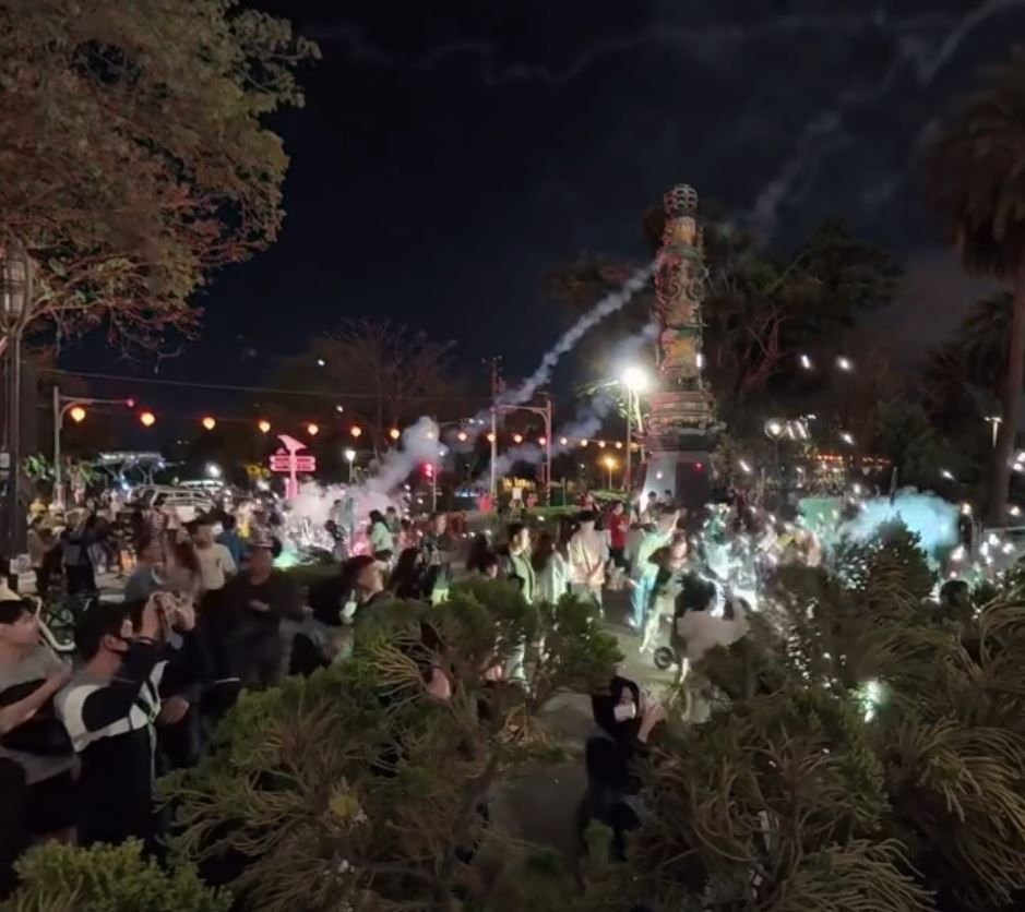 / @6 z i$ y5 ]1 G0 d! P$ t台灣高雄舉行煙花活動時,煙花彈意外射向人群。Threads@wang_flying