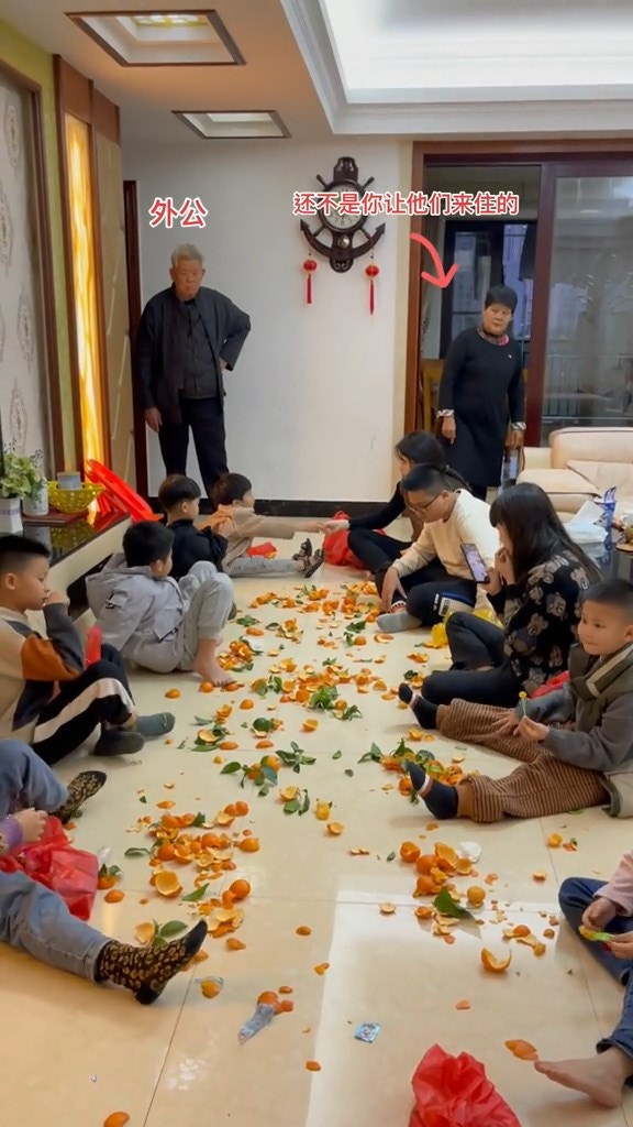 ( A K7 `) h, a# q2 }7 S3 b# h內地廣傳多段片段,指3姊妹一起回娘家度假,更帶同一地孫兒到來,結果上廁所排隊,吃飯排隊,連領利市零用錢都大排長龍,令派錢的外公派到搖頭嘆息。(網上片段截圖)