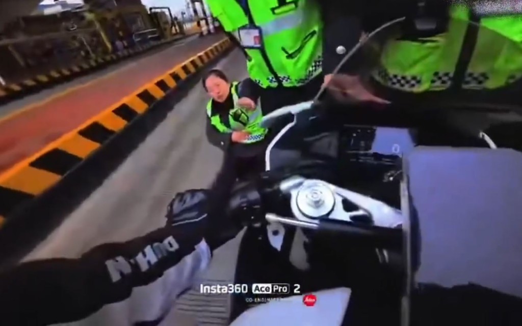 7 H% q7 {) b% G+ {# J! R電單車在「0」速度狀態下被工作人員指「撞倒」人。公仔箱論壇$ ~# M. N, f+ u# V9 a