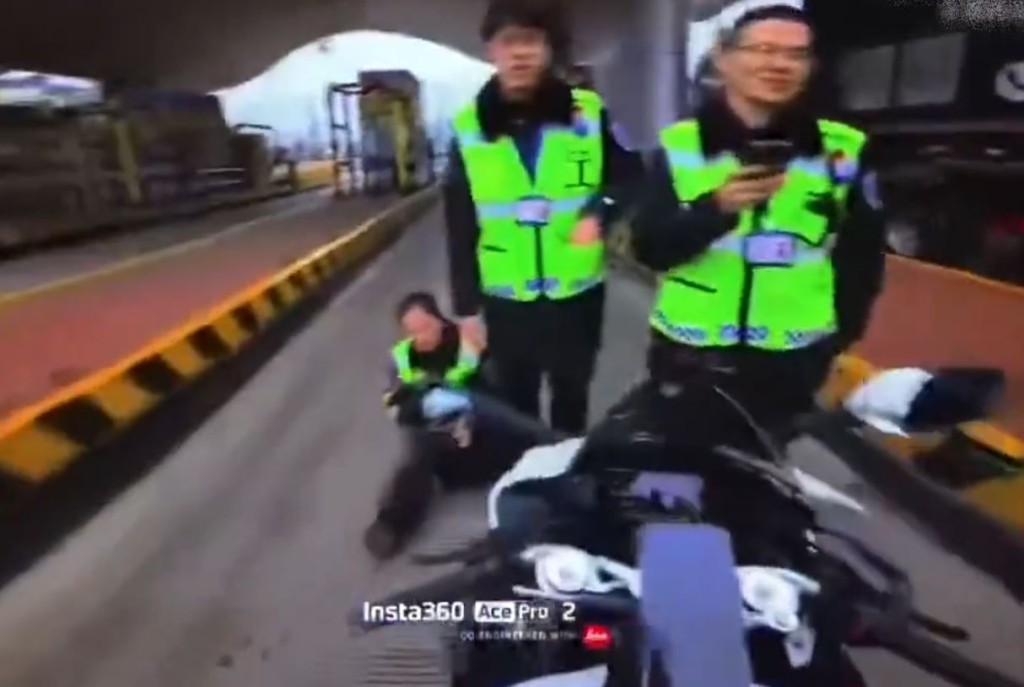 涉事影片為一名浙江的電單車車主上傳,顯示日前他駕電單車駛至一條高速公路入口,遭兩男一女穿反光背心的工作人員截下,疑阻止電單車進入,期間女工作人員突然主動用身體觸碰電單車,隨即誇張倒地大叫被撞倒,說要報警。* J( z [* E) U