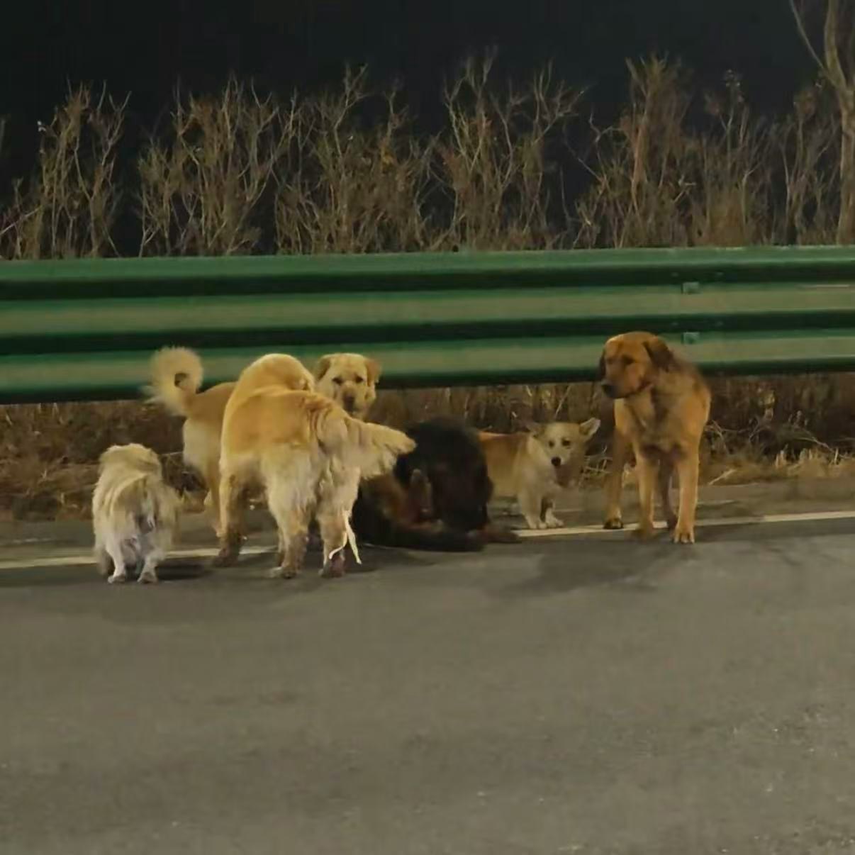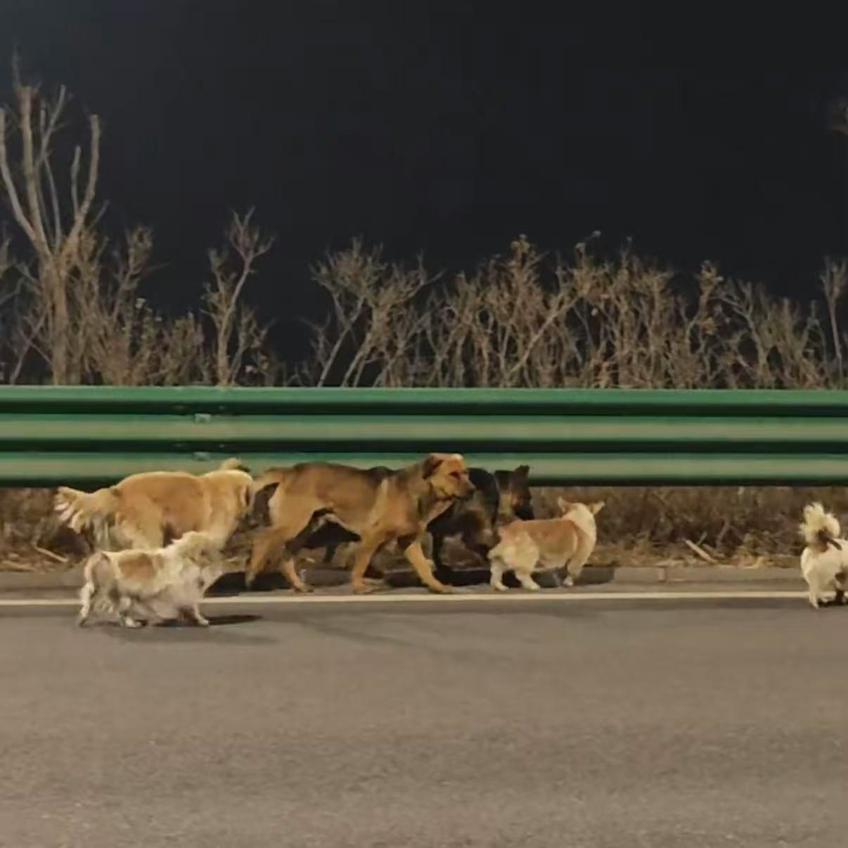 《大河報》報道,這7隻狗(含德牧、金毛、哥基犬等品種)來自同一個村莊,日常結伴玩耍。3月16日晚,被網民發現在吉林長春長雙快速路附近。據網民發佈的影片顯示,7隻狗狗沿路前行,神情驚慌。其中,德牧疑似腿部受傷,行動緩慢,其他犬隻自發將其護在隊伍中心行走。另有網民在距離雙陽17.8公里左右的田地裏拍到7隻狗。