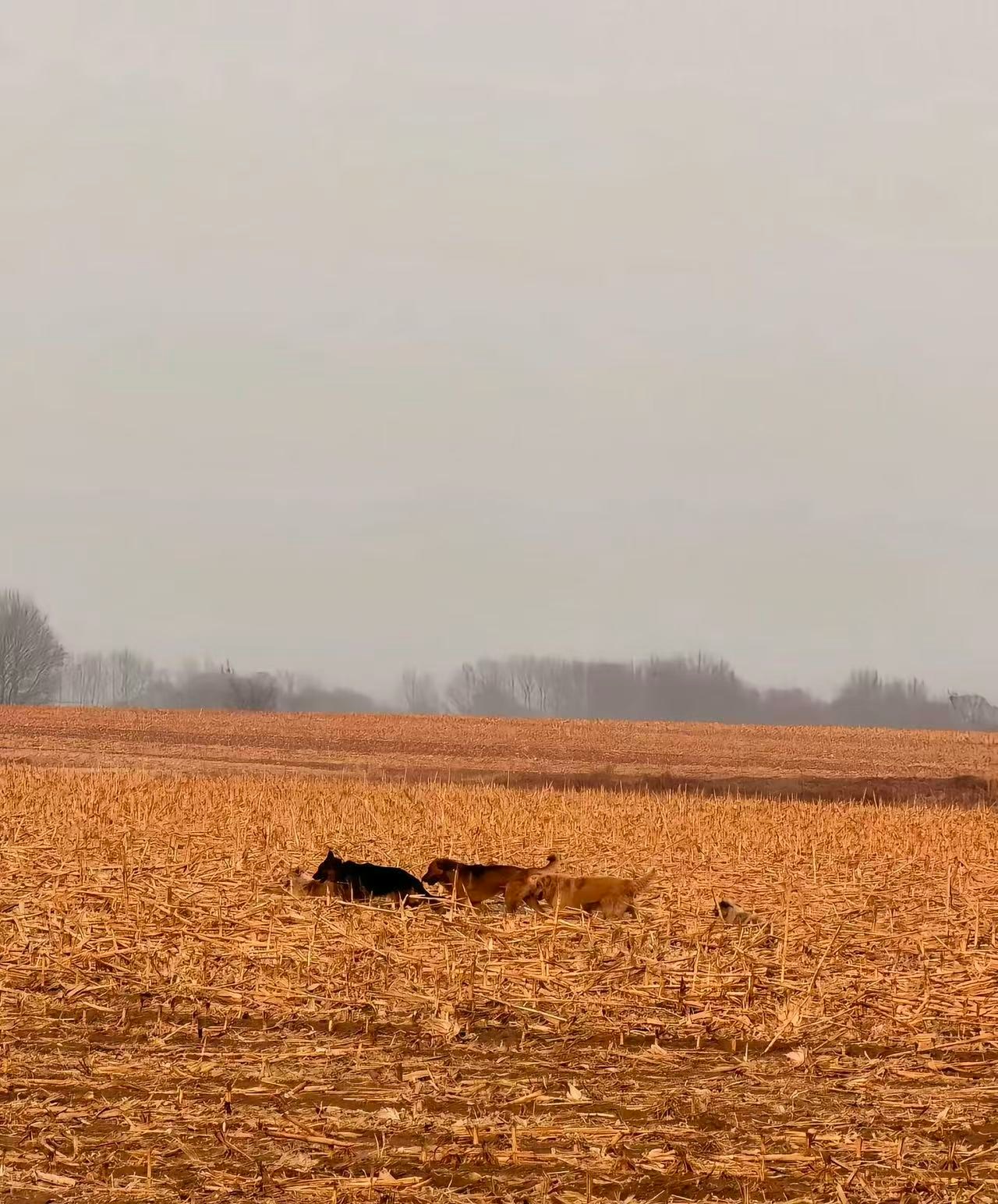 有網民在距離雙陽17.8公里左右的田地裏拍到7隻狗。(抖音@莉娜因巴斯)
